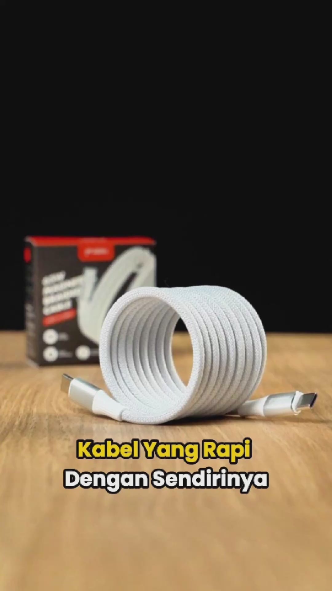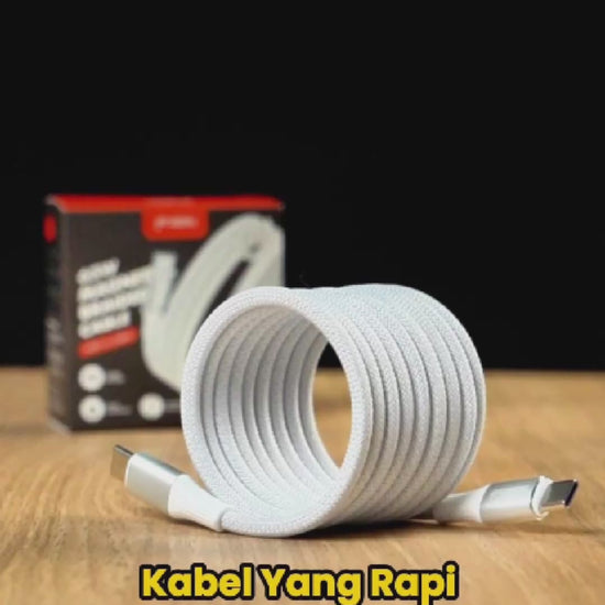 Fitur magnetic self-coiling membuat kabel otomatis menggulung rapi tanpa tali tambahan — tinggal “snap” dan beres!